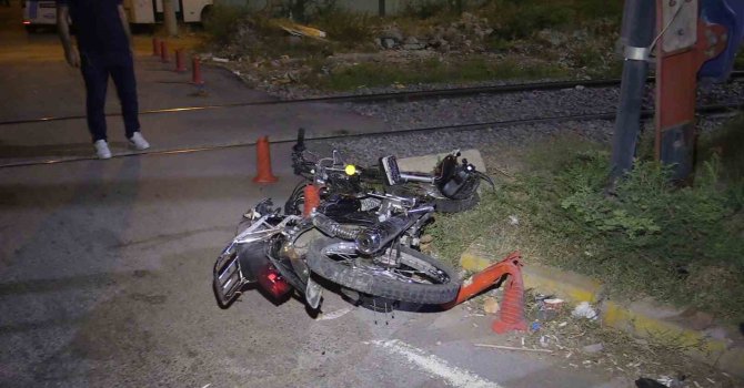 Adana'da polisin "dur" ihtarına uymayan motosikletlinin, hemzemin geçit üzerinden kaçmaya çalıştığı an cep telefonu kamerasına yansıdı. Şüpheliler kaçmaya çalıştığı sırada arkadan gelen yük treni sebebiyle kaza yapıp trenle birlikte sürüklendi. Yakalanan sürücüye 44 bin 299 TL para cezası kesildi.