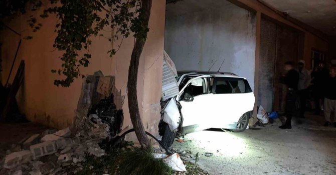 Antalya'nın Serik ilçesinde sürücünün direksiyon hakimiyetini kaybettiği otomobilin bir evin deposuna daldığı kazada sürücü yaralandı.