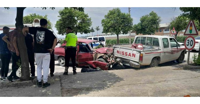 Kazada 2 kişinin yaralandığı araç ise hurdaya döndü.