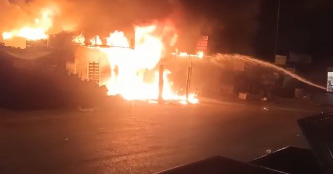 Yangın, ekiplerin müdahalesi sonrası söndürülürken iş yerindeki yağ dolu tenekeler ile birçok malzeme kullanılamaz hale geldi.