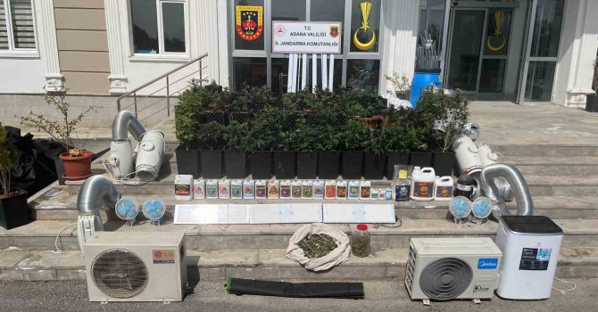 Adana'da jandarma ekipleri iklimlendirme sistemi ile uyuşturucu üreten eve operasyon düzenledi. Operasyonda çok sayıda uyuşturucu madde ve iklimlendirme sistemi ele geçirildi.