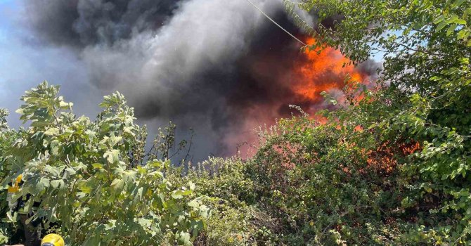 Hatay'da inşaat malzemelerinin bulunduğu depoda çıkan yangın esnasında yaşanan patlama kameraya yansıdı.