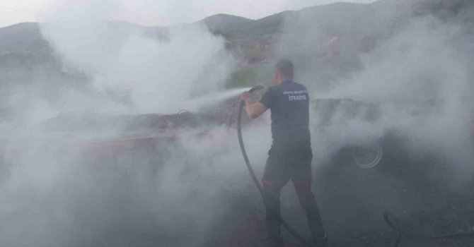 Osmaniye'de otoyolda deprem bölgesine iş makinesi taşıyan tır seyir halindeyken bir anda yanmaya başladı. Arkadaki iş makinasının operatörü aracı hemen römorktan indirirken itfaiye yangını söndürdü.