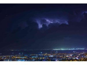 İskenderun Körfezi'nde şimşek fırtınası geceyi aydınlattı, art arda çakan şimşekler adeta görsel şölen oluşturdu.
