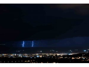 Hatay'ın İskenderun ilçesinde etkili olan yağışla birlikte ardı ardına çakan şimşekler, körfezde kartpostallık manzaralar oluşturdu.