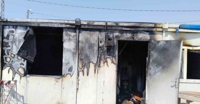Hatay'ın İskenderun ilçesinde depremzede vatandaşların yaşadığı konteyner yanarak kullanılmaz hale geldi.