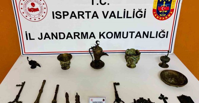 Isparta'da jandarmanın düzenlediği operasyonlarda 15 tarihi eser ele geçirildi.