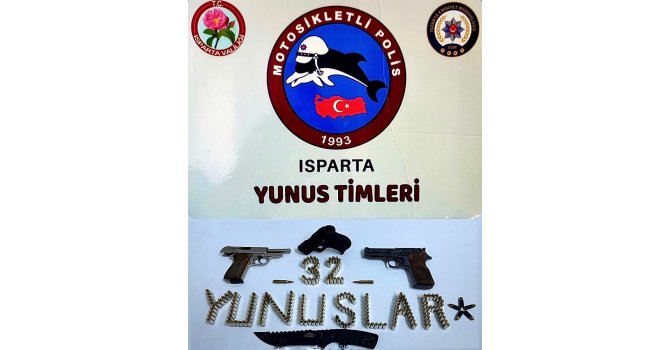 Isparta İl Emniyet Müdürlüğü Asayiş Şube Müdürlüğü Devriye Ekipler Amirliği tarafından mahalle aralarında şok uygulama gerçekleştirildi. Yapılan 387 şok uygulama sonucunda; 4 adet ruhsatsız tabanca, 5 adet ruhsatsız av tüfeği, 1 adet kurusıkı tabanca, 4 adet kesici alet, 1 adet el telsizi ve 254 adet fişek ele geçirildi.