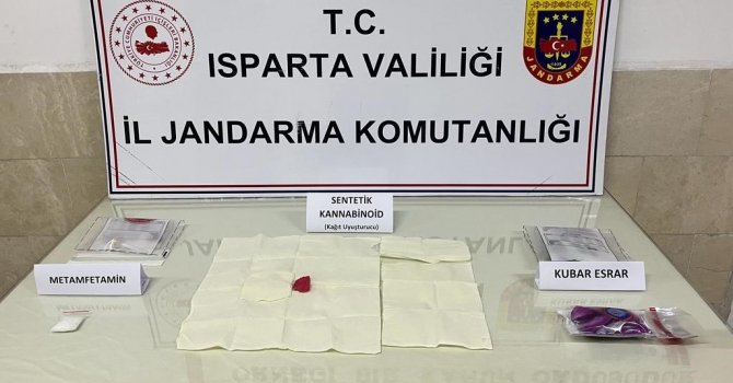 Isparta İl Jandarma Komutanlığı ekipleri tarafından uyuşturucu ile mücadele çerçevesinde gerçekleştirilen şok uygulamada toplam 9 bin 6 kullanımlık sentetik cannabionoid (bonzai) emdirilmiş kağıt uyuşturucu, 10 gram metamfetamin, 7 gram esrar ve 1 adet uyuşturucu madde kullanma aparatı ele geçirildi. Uygulamada 1'i uyuşturucu madde imal ve ticareti, 1'i dolandırıcılık suçundan arandığı tespit edilen toplam 4 şüpheli şahıs uyuşturucu madde imal ve ticareti suçundan gözaltına alındı.
