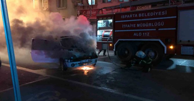 Isparta'da park halindeki otomobil elektrik kontağında meydana gelen kısa devre nedeniyle yandı.