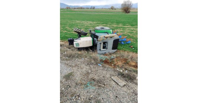 Isparta'da lastiği patlayan traktörün şarampole yuvarlandığı kazada sürücü yaralandı.