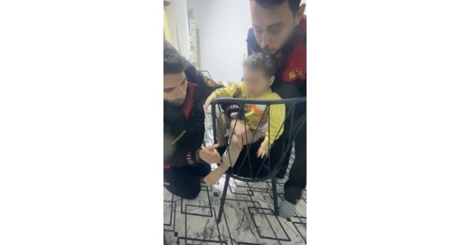 Osmaniye'de, evde oynarken sandalyenin demir bölümüne ayağı sıkışan çocuğun imdadına, itfaiyede şoför olan babasının mesai arkadaşları yetişti.