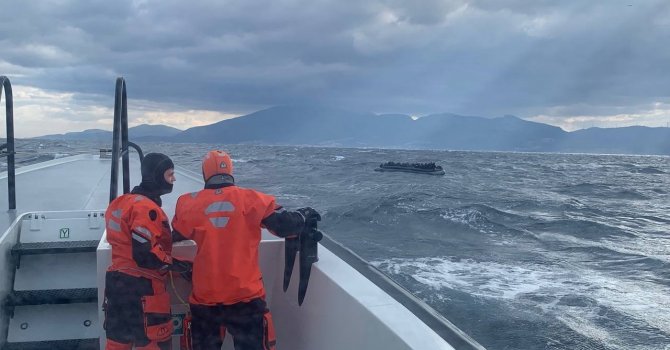İzmir'in Foça ilçesinde Yunanistan unsurlarınca Türk kara sularına geri itilen 50 göçmen kurtarıldı.