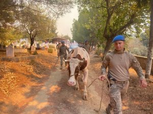 Bölgedeki çalışmalara destek veren jandarma ekipleri, Türkiye Afet Müdahale Planı çerçevesinde tahliye ve yerleştirme görevini yürütüyor. Jandarma ekipleri yangın bölgesindeki vatandaşlara yardım ederken, boşaltılan mahallelerdeki hayvanları da tahliye etmek için büyük bir gayret gösteriyor.