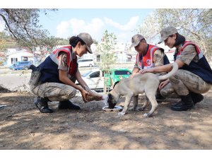 Hatay'da jandarma, polis ve gönüllü gençler "4 Ekim Hayvanları Koruma Günü" faaliyetleri çerçevesinde sokak hayvanlarına yem ve mama desteğinde bulundu.