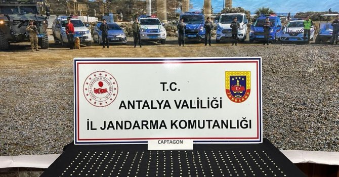 Antalya Valiliği İl Jandarma Komutanlığına bağlı ekiplerin gerçekleştirdiği operasyonda bin 25 adet captagon hap ele geçirdi. Olayla ilgili 2 şüpheli gözaltına alındı.