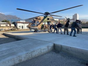 Türkiye'yi yasa boğan depremlerin yaralarının sarılması için tüm kurumlar sahada görev yaparken, jandarma da depremzedeler için ilk andan itibaren sahada çalışmasını sürdürüyor. Hem güvenlik hem de ihtiyaç malzemelerinin vatandaşlara ulaştırılması için çalışmasını sürdüren jandarma, helikopterler sayesinde hızlı destek sağlıyor. Jandarma Genel Komutanı Orgeneral Arif Çetin, son olarak Hatay'ın Payas ilçesine de bazı bölgeler için çadır ve ihtiyaç malzemesini helikopterle gönderdi.