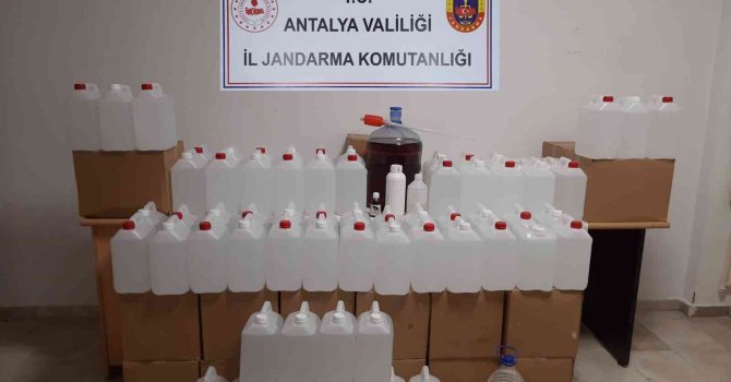 Antalya'da jandarma tarafından yapılan operasyonda 325 litre etil alkolle birlikte kaçak/sahte içki ele geçirildi. Olayla ilgili bir şüpheli gözaltına alındı.