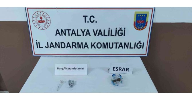 Gazipaşa İlçe Jandarma Komutanlığı tarafından yapılan çalışmalar sonucunda Güney Jandarma Karakol Komutanlığı yol kontrol noktasında durdurulan turizm firmasına ait yolcu otobüsünde yapılan kimlik kontrolünde yolcu olarak bulunan şüpheli Z.S.'nin üst araması yapıldı. Aramada 15 gram ağırlığında kubar esrar, 5 gram metamfetamin, uyuşturucu kullanma aparatı bong ele geçirildi.