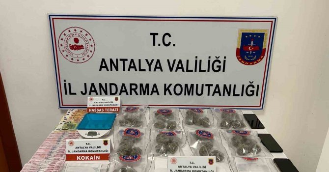 Manavgat'ta uyuşturucu madde ile mücadele kapsamında çalışmalarda bulunan Antalya İl Jandarma Komutanlığı KOM Şube Müdürlüğü, Manavgat İlçe Jandarma Komutanlığı KOM Timi ve Side Jandarma Karakol Komutanlığı ekipleri S.D. ve S.K.'nın Side'de yerli ve yabancı turistlere uyuşturucu madde sattıklarını belirledi. Jandarma ekipleri, operasyonla şüphelileri yakalarken ev ve araçlarında yapılan aramalarda, 2 kilo 450 gram skunk, 5 gram kokain, 1 hassas terazi, uyuşturucu satışından elde edildiği değerlendirilen bir miktar döviz ve Türk lirası ele geçirildi. Esrarın bir kısmının hediye kutusundan çıktığı görüldü.