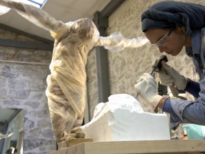 Kadınların yaşam mücadelesini bronz, ahşap, mermer, metal ve cam gibi farklı malzemelerden ürettiği yapıtlarında dile getiren Arzum Onan’ın, sergiyle kadının kendi rızası ya da baskıyla sıkıştığı, üzüldüğü, gözyaşı döktüğü yere kendince işaret etmek, dokunmak arzusu taşıdığını söyledi. Haber Merkezi