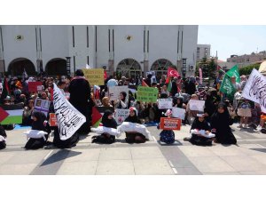 Ulu Cami önünde bir araya gelen kadınlar, ellerinde Filistin ve Türk bayraklarının yanı sıra çeşitli pankartlar taşıdı. Sloganlar atarak, İsrail'in Gazze'ye yönelik saldırılarını protesto eden kadınlar, zaman zaman tekbir getirdi. Bir kız çocuğu da ilahi okudu.