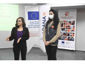Kentsel Hizmetlere Erişim ve Toplumsal Cinsiyet Eşitliği Atölyesi" de Hayata Destek Derneği'nden avukat ve sosyal çalışmacı tarafından eğitim, kayıt, eğitim, sağlık ve barınma gibi konuların yanı sıra adalete erişim, koruma hukuku ve aile hukuku gibi yasal konuları aktarılarak temel haklara ve hizmetlere erişmeleri için gerekli bilgilendirme yapıldı.