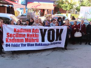 Dernek üyesi yaklaşık 50 kadın CHP Antalya İl Başkanlığı önünde, “Kadının adı, seçilme hakkı, kadının mührü yok, 84 yıldır var olan hakkımızı istiyoruz" pankartı açtı. Burada sessiz şekilde iki dakika pankart açan kadınlar ardından dağıldı. Kadınlar adına açıklama yapan 1 Kadın Hareketi Derneği Başkanı Buket Dağlı, aynı zamanda CHP’nin meclis üyesi olduğunu hatırlatarak, yaptıkları eylemin partilerine karşı bir hareket olmadığını dile getirdi.