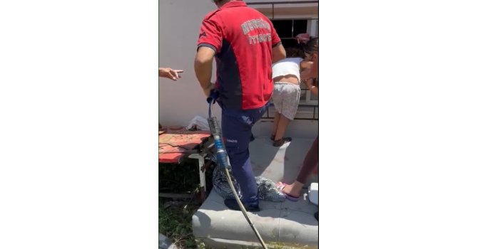 Mersin'de pencereden eve girmeye çalışırken kafası demir parmaklıklara sıkışan çocuğu, itfaiye ekipleri kurtardı.