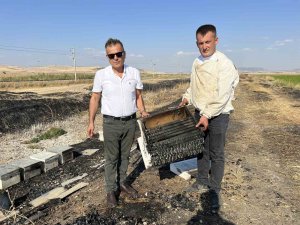 Kahramanmaraş'ın Pazarcık ilçesinde arıcılıkla uğraşan bir kişinin pamuğa ve ayçiçeğine getirdiği arıları yanarak kül oldu.