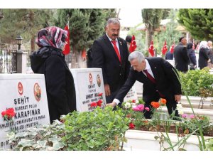 Şehitlikte düzenlenen programda, çelenk sunumunun ardından saygı duruşunda bulunularak İstiklal Marşı okundu. Protokol üyeleri, şehit mezarlarına karanfil bırakarak dualar etti. Kur'an-ı Kerim tilavetinin ardından dua edilerek şehitler anıldı.