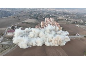 Kahramanmaraş merkezli depremler sonrası ağır hasar raporu verilen binalar patlayıcı ile yıkılıyor.
