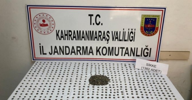 Edinilen bilgiye göre, jandarma ekipleri, Türkoğlu ilçesi Cüceli Mahallesinde bir otomobili durdurarak arama yaptı. Yapılan aramada, Roma dönemine ait olduğu değerlendirilen bin 382 adet sikke ele geçirildi. Olayla ilgili otomobil sürücüsü K.Y. (42) hakkında adli işlem başlatıldı.
