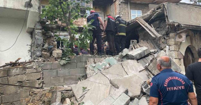 Kahramanmaraş'ta iki katlı metruk bina çöktü. Ekipler enkazda arama çalışmaları başlattı.