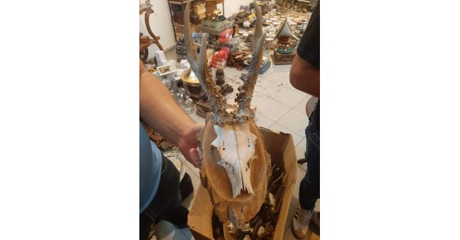 Yapılan aramada, yurtdışından kaçak yollarla getirilen ve satışı yapılan 34 karaca, 1 kızıl geyik ve 1 yaban domuzuna ait trofeler ele geçirildi.