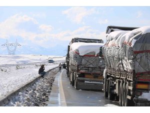 Gaziantep-Kahramanmaraş Otobanı Nurdağı, Kömürler istikametinde tır kuyrukları oluştu. Bazı şoförler de kahvesini yudumlayıp yolun açılmasını bekledi.