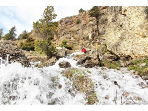 Kahramanmaraş'ın Göksun ilçesinde karların erimesi ile birlikte şelaleler coştu.
