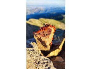 Kahramanmaraş'ta 2 bin 260 metre yüksekliğindeki Çimen Dağı'nın Uludaz Tepesi'nde koloniler halindeki uğur böcekleri görsel bir şölen sunuyor. Kent merkezine 65 kilometre uzaklıkta bulutların üstündeki Uludaz Tepesi'nde koloniler halinde yaşayan, renkleri ve yoğunluklarıyla dikkati çeken uğur böcekleri, şehrin doğa turizmi için önemli bir unsur haline geldi. Uğur böceklerini görmeye çok sayıda ziyaretçi geliyor.