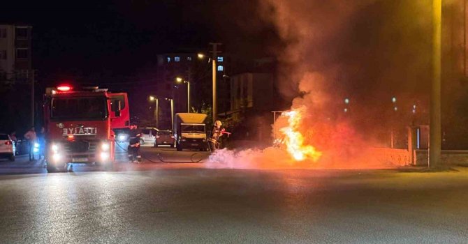 Yanan otomobil kullanılamaz hale geldi. Otomobilin yanma anı bir vatandaşın cep telefonu kamerasına yansıdı.