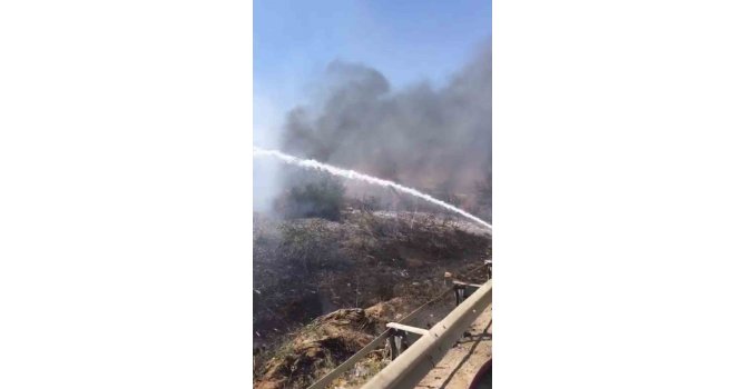 Durumu fark eden sürücü A.Ö., aracı güvenlik şeridinde durdurdu. Bu esnada kamyon kasasında çıkan yangından yükselen alevler, otoyol yanında bulunan ağaçlık ve çalılık alana sıçradı.