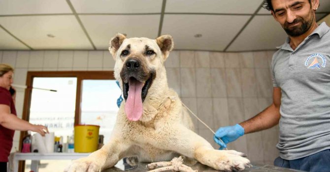 Köpek, tedavi için Muratpaşa Belediyesi'nin Sokak Hayvanları Geçici Bakımevi ve Rehabilitasyon Merkezi'ne getirildi. Belediyenin hayvan nakil aracıyla alınan köpeğin burada gerekli tüm kontrol ve muayeneleri yapıldı.