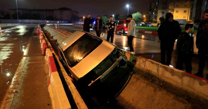 Kaza, saat 00.30 sıralarında Kepez ilçesi Habipler Mahallesi Elmalılı Hamdi Yazır Caddesi üzerinde meydana geldi. Edinilen bilgiye göre, İbrahim S.'nin kullandığı 07 LOVZ 25 plakalı otomobil, yağış nedeniyle kayganlaşan yolda kontrolden çıkarak refüje çarpıp yağmur suyu tahliye kanalına uçtu. Sürücü İbrahim S. çevredeki vatandaşlar tarafından araçtan çıkarılırken, ihbar üzerine olay yerine polis, sağlık ve itfaiye ekipleri sevk edildi. Kazayı yara almadan atlatan otomobil sürücüsü, sağlık ekiplerine durumunun iyi olduğunu belirterek, hastaneye gitmek istemediğini söyledi. Otomobil vinç yardımıyla kanaldan çıkarılarak çekiciye yüklenirken, kazayla ilgili inceleme başlatıldı.