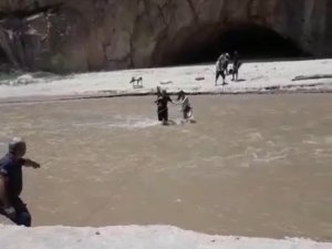 Adana'nın Karaisalı ilçesinde Kapıkaya Kanyonu'nda suyun yükselmesi sonucu mahsur kalan vatandaşları itfaiye ekipleri kurtardı.
