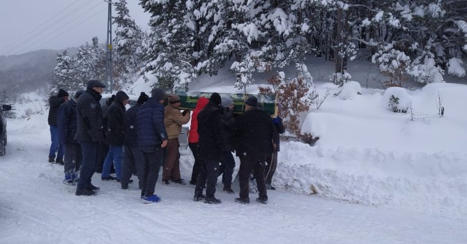 İstanbul'da hayatını kaybeden ve memleketi Kastamonu'ya getirilen Şaziye Çelik'in cenazesi, yoğun kar ve tipinin etkili olduğu bölgede mahsur kaldı. Köy yolunun ulaşıma açılmasıyla cenaze defnedilebildi.