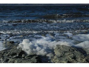 Burdur Gölü'nde kar yağışının ardından köpüklenme gerçekleşti. Uzmanlar köpüklenmenin doğal süreç olduğunu söyledi.