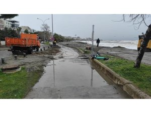 Yürüyüş bandı, dalgaların taşıdığı kum, taş ve çöplerle doldu. Samsun Büyükşehir Belediyesi Park Bahçeler ve Çevre Koruma Kontrol Dairesi Başkanlığı ekiplerince iş makineleri desteği ile temizlik çalışmaları başlatıldı.