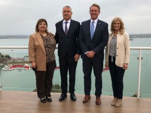 Eşi Cherly Flake ile birlikte Başkan Karalar ve eşi Nuray Karalar'ı ziyaret eden Jeff Flake, kentle ilgili bilgi aldı.