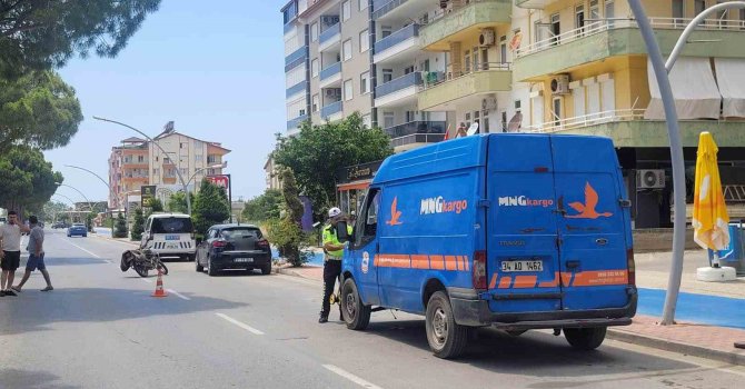 Antalya'nın Gazipaşa ilçesinde seyir halinde olan motosiklet yol kenarında duran MNG Kargo'ya ait aracın sürücüsü tarafından açılan kapısına çarptı. Olayda motosiklet sürücüsü yaralandı.