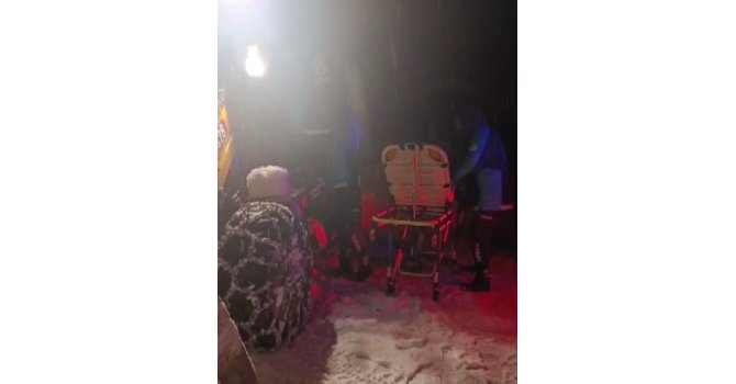 Kahramanmaraş'ta zehirlenen şahıs, karlı yolların ekiplerce iş makinesiyle açılmasıyla hastaneye ulaştırıldı.