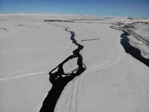Kars Çayı mendereslerinin görsel şölen sunduğunu ifade eden Adem Alp, "Allahuekber Dağları'ndan doğan ve Kars şehir merkezinden geçerek Hazar Denizi'ne dökülen Kars Çayı, kışın güzel menderesler oluşturuyor" dedi.